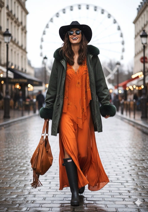 SLY Denim Parka with Real Fur Hood -